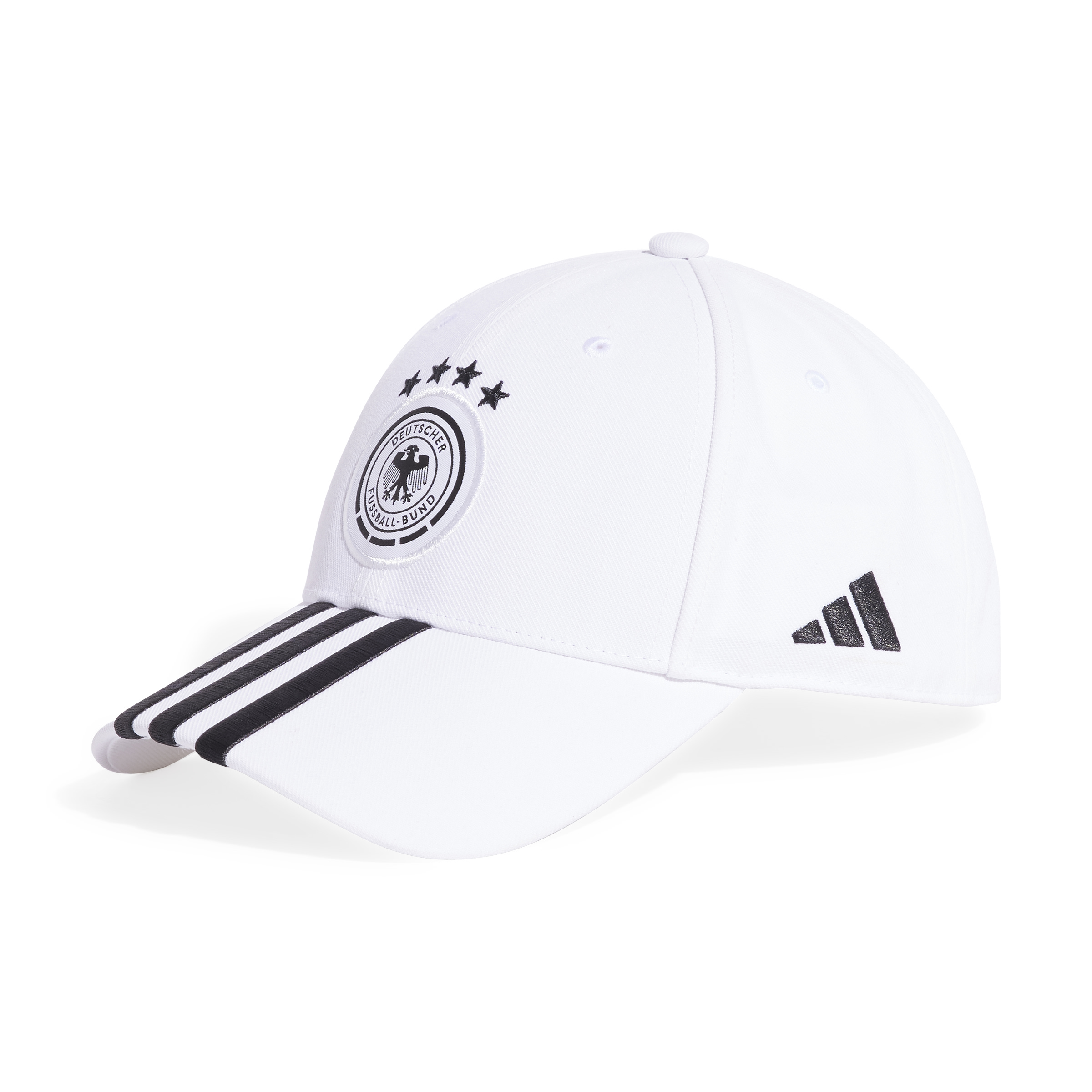 Cheer on the four-time world champions in style. Proudly displaying an embroidered crest on the crown, this adidas soccer cap shows your support for the Germany national team wherever you go. Its pre-curved brim keeps the sun out of your eyes so you can focus on the action on the pitch. Around the back, an adjustable strap ensures you find the perfect fit. This product is made with at least 50% recycled materials. By reusing materials that have already been created, we help to reduce waste and our reliance on finite resources and reduce the footprint of the products we make.